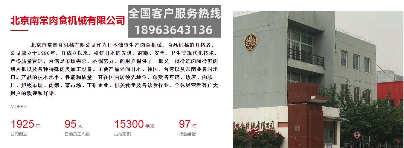 北京南常肉食机械有限公司_南常切片机|锯骨机|绞肉机(郑经理:l89*6364*3136电话/微信)作为日本独资生产南常切片机,南常切肉机,南常切肉片机,南常刨肉机,南常冻肉切片机,南常切羊肉机,南常肉片机,北京南常,南常切片机厂家,南常HB-2切片机,南常NFC切片机,南常立式切片机,南常全自动切片机,南常切片机售后电话肉食机械、食品机械的开拓者,公司成立于1986年,自成立以来,引进日本的先进、高能、安全、卫生等现代化技术,严格质量管理,为满足市场需求,不懈努力,向用户提供了一批又一批冷冻肉和冷鲜肉切片机以及各种特殊肉类加工设备。主要产品还向日本、韩国、台湾以及东南亚各国出口。产品的技术水平、性能和质量一直在国内居领先地位,深受各宾馆、饭店、肉联厂、超级市场、肉铺、菜市场、工矿企业、机关食堂及各饮食行业、个体经营者等广大用户的欢迎和好评。